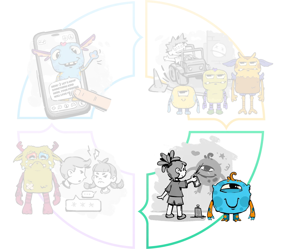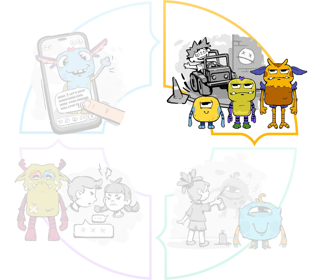 These minigames create shared moments and make play part of the group experience. They are not designed to pull children into endless competition loops, but to be part of a world where friendship, play and creativity come together.