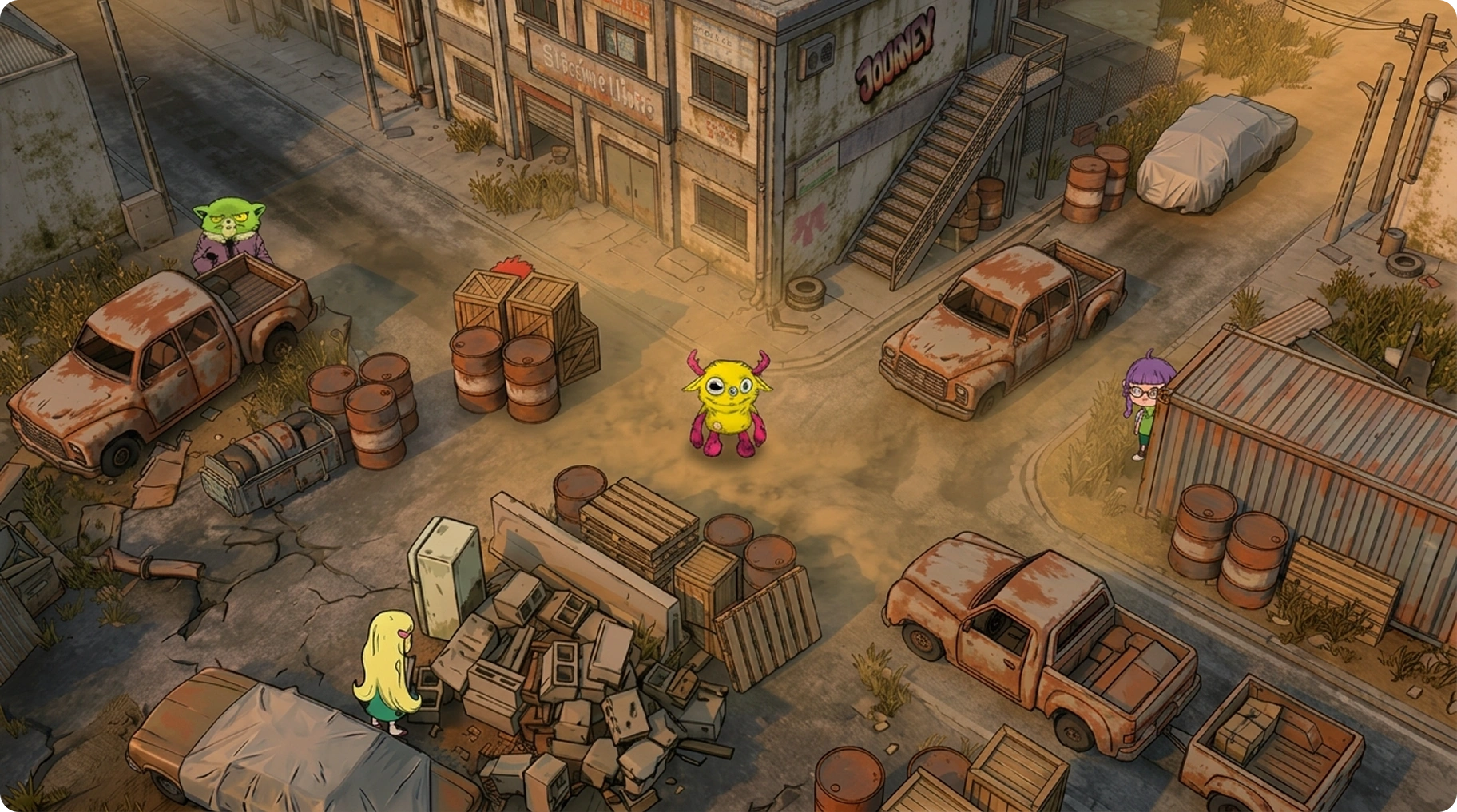 The world of snërqq is carried by recurring characters — the Yard Crew.